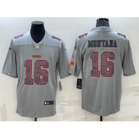 Men's San Francisco 49ers #16 Joe Montana LOGO Grey Atmosphere Fashion 2022 Vapor Untouchable Stitched Limited Jersey