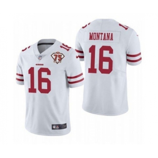 Men's San Francisco 49ers #16 Joe Montana White 2021 75th Anniversary Vapor Untouchable Limited Jersey