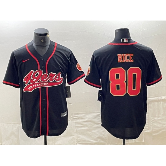 Men's San Francisco 49ers #80 Jerry Rice Black Red With Cool Base Stitched Baseball Jersey