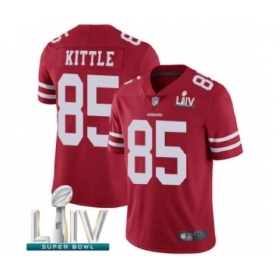 Men's San Francisco 49ers #85 George Kittle Red Team Color Vapor Untouchable Limited Player Super Bowl LIV Bound Football Jersey