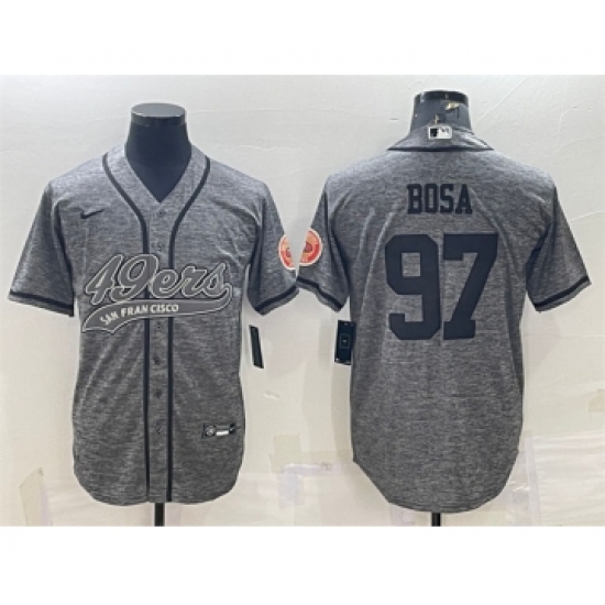 Men's San Francisco 49ers #97 Nick Bosa Gray With Patch Cool Base Stitched Baseball Jersey