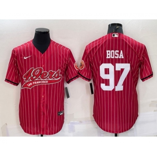 Men's San Francisco 49ers #97 Nick Bosa Red Black With Cool Base Baseball Stitched Jersey
