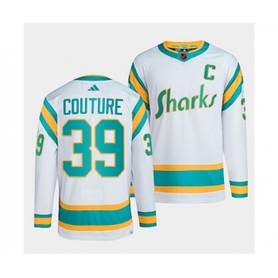 >Men's San Jose Sharks #39 Logan Couture White 2022 Reverse Retro Stitched Jersey