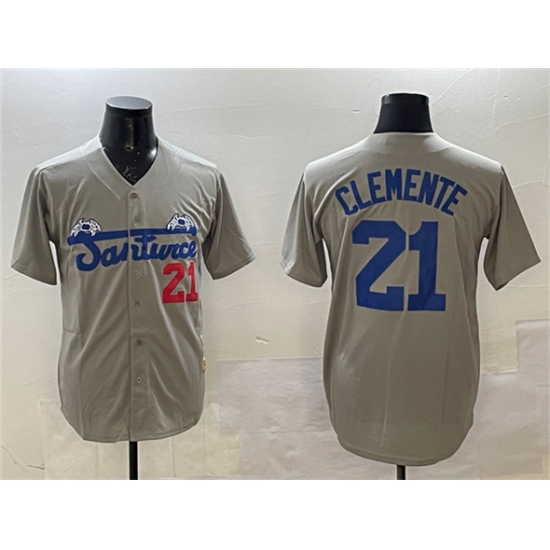 Men's Santurce Crabbers #21 Roberto Clemente Gray Cool Base Stitched Baseball Jersey