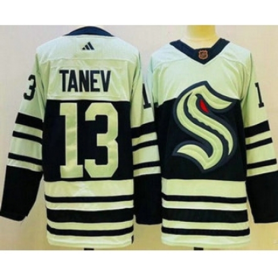 >Men's Seattle Kraken #13 Brandon Tanev Light Green 2022 Reverse Retro Authentic Jersey