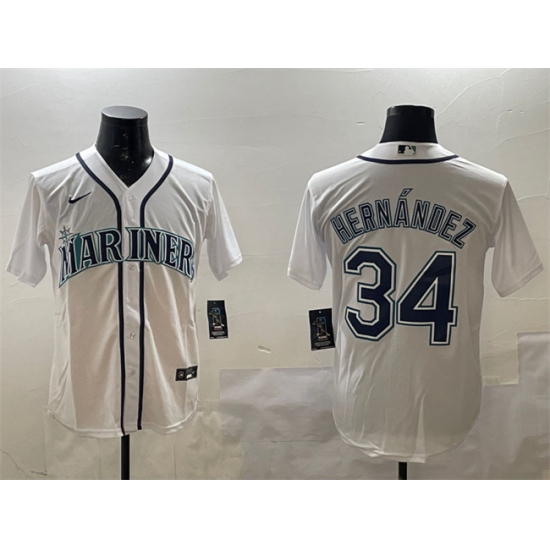>Men's Seattle Mariners #34 Félix Hernández White Cool Base Stitched Baseball Jersey