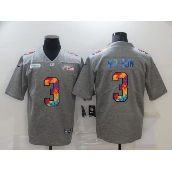 Men's Seattle Seahawks #3 Russell Wilson Gray Rainbow Version Nike Limited Jersey