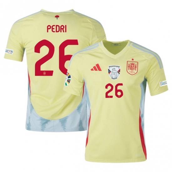Men's Spain Team #26 Pedri Yellow 2024 Away Soccer Jersey