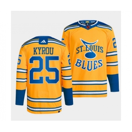 Men's St. Louis Blues #25 Jordan Kyrou Yellow 2022-23 Reverse Retro Stitched Jersey