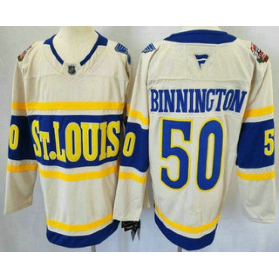 >Men's St Louis Blues #50 Jordan Binnington Cream 2025 Winter Classic Authentic Jersey