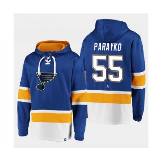 >Men's St. Louis Blues #55 Colton Parayko Blue Ageless Must-Have Lace-Up Pullover Hoodie