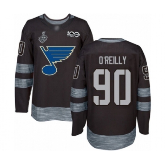 Men's St. Louis Blues #90 Ryan O'Reilly Authentic Black 1917-2017 100th Anniversary 2019 Stanley Cup Final Bound Hockey Jersey