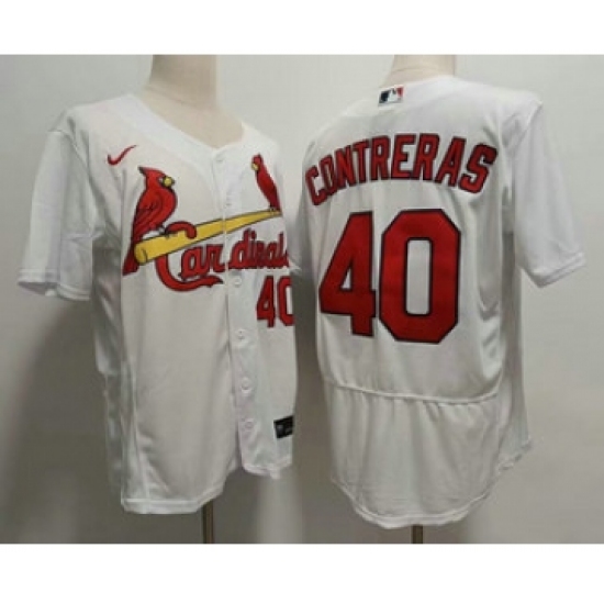 Men's St Louis Cardinals #40 Willson Contreras White Stitched MLB Flex Base Nike Jersey