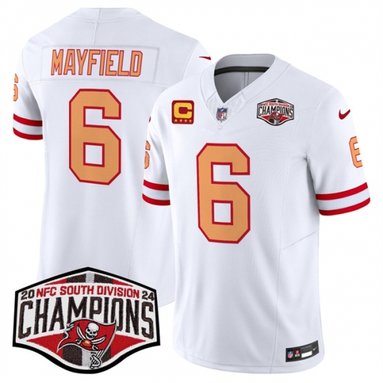 Men's Tampa Bay Buccaneers #6 Baker Mayfield White F.U.S.E. 2024 NFC South Champions With 4-Star C Limited Stitched Jersey