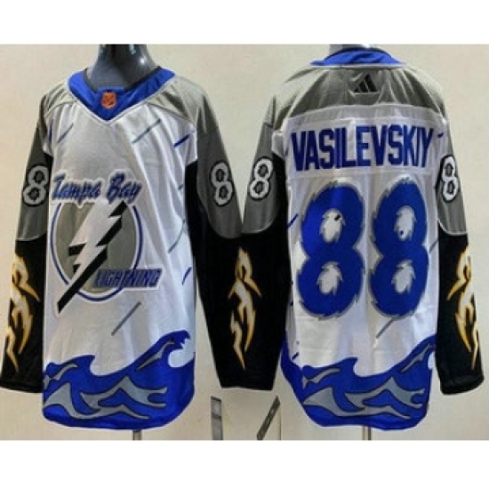 >Men's Tampa Bay Lightning #88 Andrei Vasilevskiy White 2022 Reverse Retro Authentic Jersey
