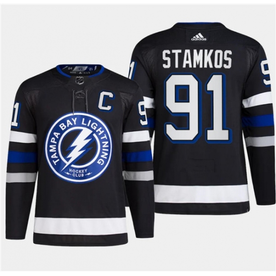 Men's Tampa Bay Lightning #91 Steven Stamkos Black 2024 Stadium Series Stitched Jersey