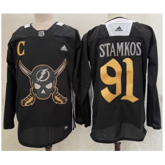 Men's Tampa Bay Lightning #91 Steven Stamkos Black Pirate Themed Warmup Authentic Jersey