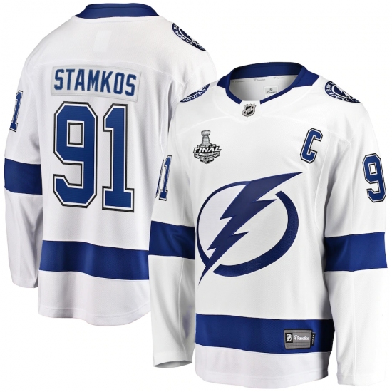 Men's Tampa Bay Lightning #91 Steven Stamkos Fanatics Branded White Away 2020 Stanley Cup Champions Breakaway Jersey