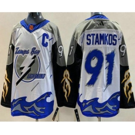 Men's Tampa Bay Lightning #91 Steven Stamkos White Stitched Jersey