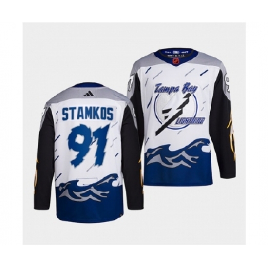 Men's Tampa Bay Lightning #91 Steven Stamkos White 2022 Reverse Retro Authentic Jersey