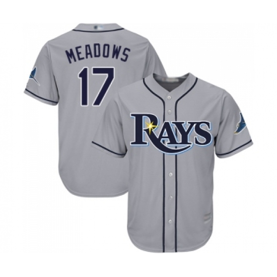 >Men's Tampa Bay Rays #17 Austin Meadows Replica Grey Road Cool Base Baseball Jersey