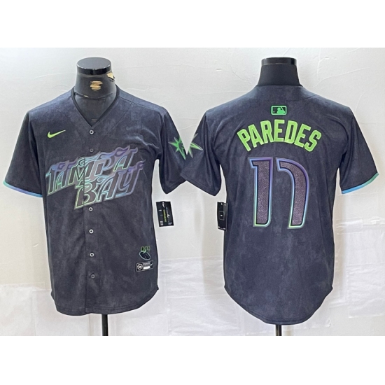 >Men's Tampa Bay Rays #17 Isaac Paredes Charcoal 2024 City Connect Limited Cool Base Jersey