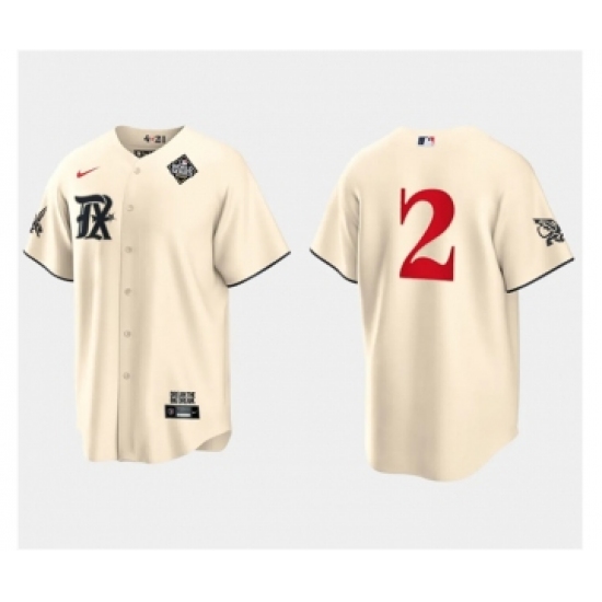>Men's Texas Rangers #2 Marcus Semien Cream 2023 World Series City Connect Stitched Baseball Jersey