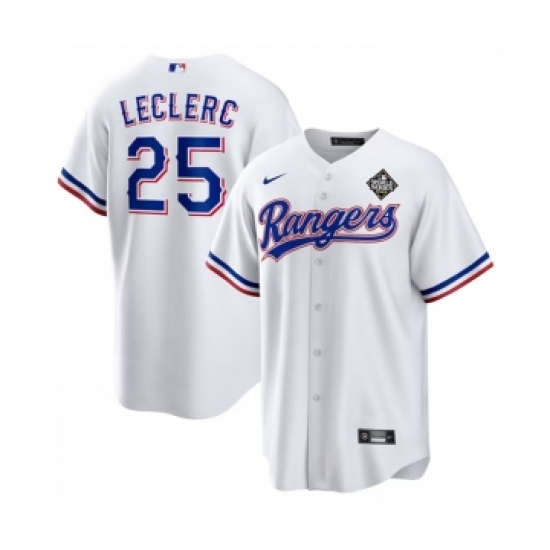 Men's Texas Rangers #25 José Leclerc White 2023 World Series Stitched Baseball Jersey