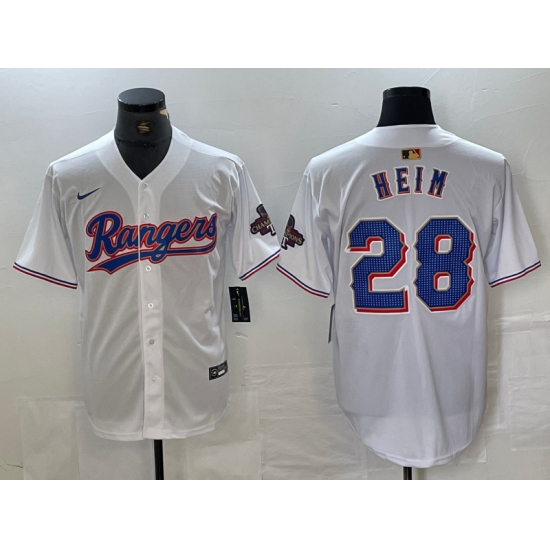 Men's Texas Rangers #28 Jonah Heim White 2023 World Series Champions Cool Base Jersey