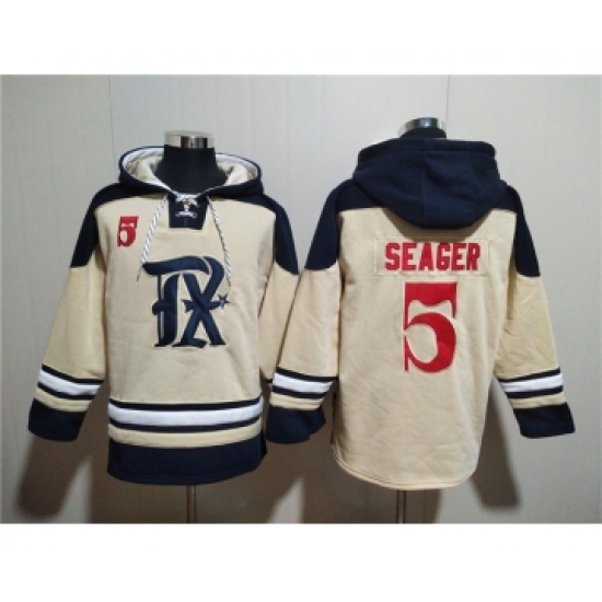 >Men's Texas Rangers #5 Corey Seager Cream Ageless Must-Have Lace-Up Pullover Hoodie