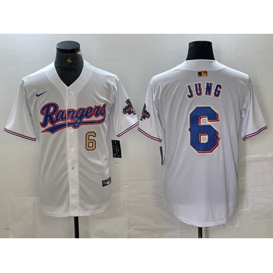 Men's Texas Rangers #6 Josh Jung White 2023 World Series Flex Base Stitched Baseball Jersey