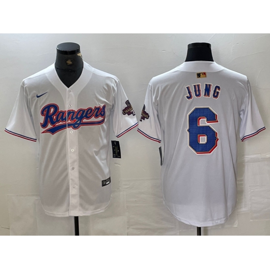 Men's Texas Rangers #6 Josh Jung White 2023 World Series Champions Cool Base Jersey
