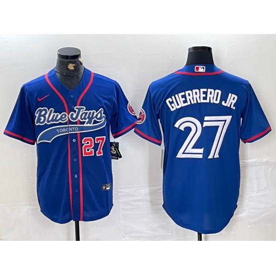 Mens Toronto Blue Jays #27 Vladimir Guerrero Jr Blue Cool Base Stitched Baseball Jersey