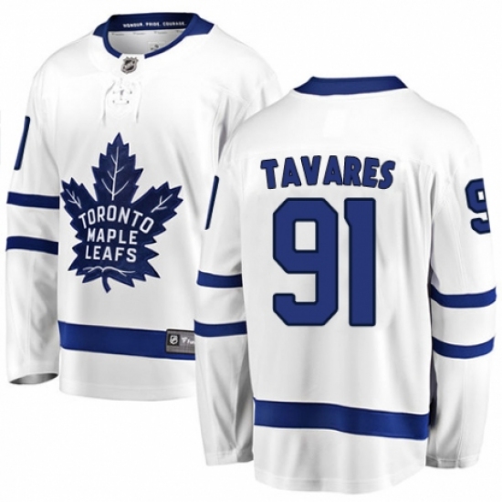 Men's Toronto Maple Leafs #91 John Tavares Authentic White Away Fanatics Branded Breakaway NHL Jersey