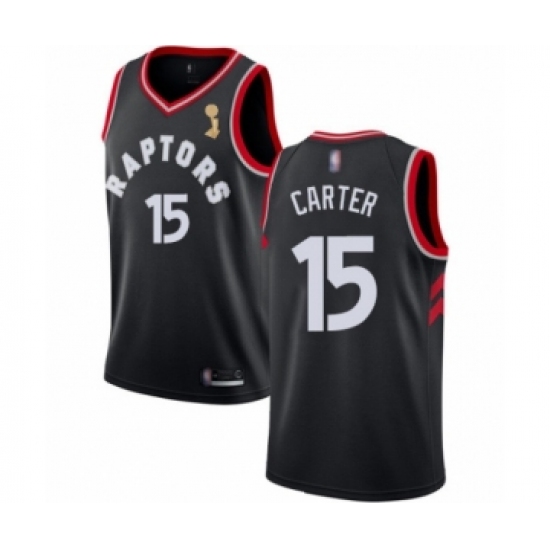 >Men's Toronto Raptors #15 Vince Carter Swingman Black 2019 Basketball Finals Champions Jersey Statement Edition