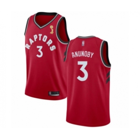 Men's Toronto Raptors #3 OG Anunoby Swingman Red 2019 Basketball Finals Champions Jersey - Icon Edition