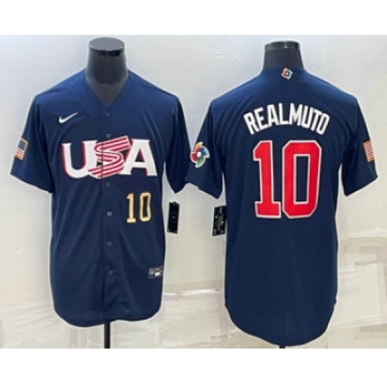 Men's USA Baseball #10 JT Realmuto 2023 Navy World Baseball Classic Stitched Jersey