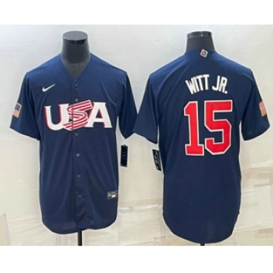 >Men's USA Baseball #15 Bobby Witt Jr 2023 Navy World Baseball Classic Stitched Jerseys