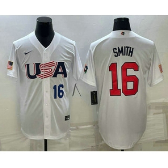 >Mens USA Baseball #16 Will Smith Number 2023 White World Baseball Classic Stitched Jersey