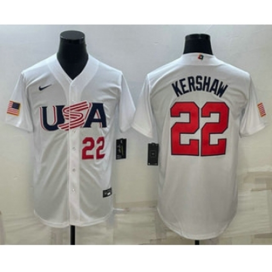 Mens USA Baseball #22 Clayton Kershaw Number 2023 White World Baseball Classic Stitched Jersey