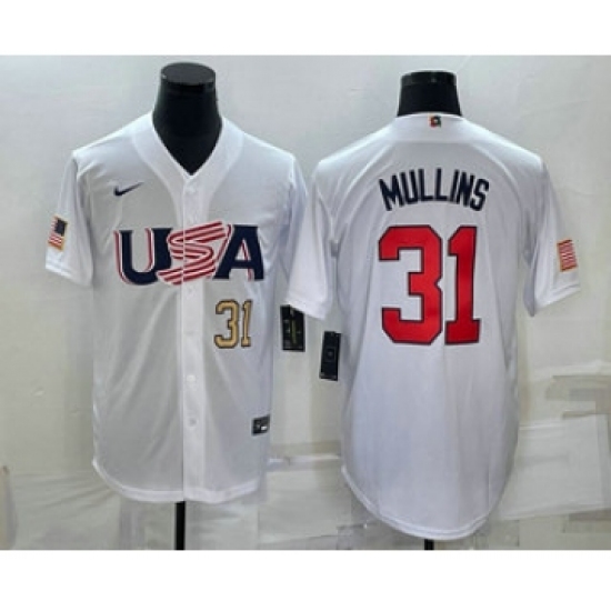 >Men's USA Baseball #31 Cedric Mullins Number 2023 White World Classic Stitched Jersey