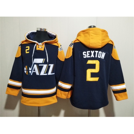 >Men's Utah Jazz #2 Collin Sexton Navy Yellow Lace-Up Pullover Hoodie