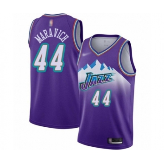 Men's Utah Jazz #44 Pete Maravich Authentic Purple Hardwood Classics Basketball Jersey