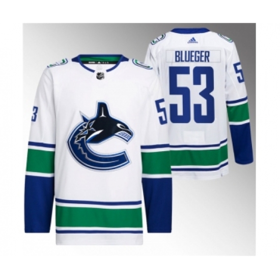 Men's Vancouver Canucks #53 Teddy Blueger White Retro Stitched Jersey