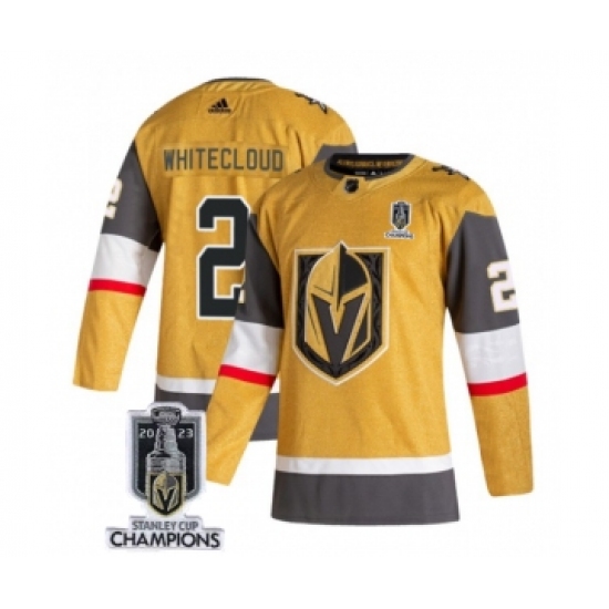 Men's Vegas Golden Knights #2 Zach Whitecloud Gold 2023 Stanley Cup Champions Stitched Jersey