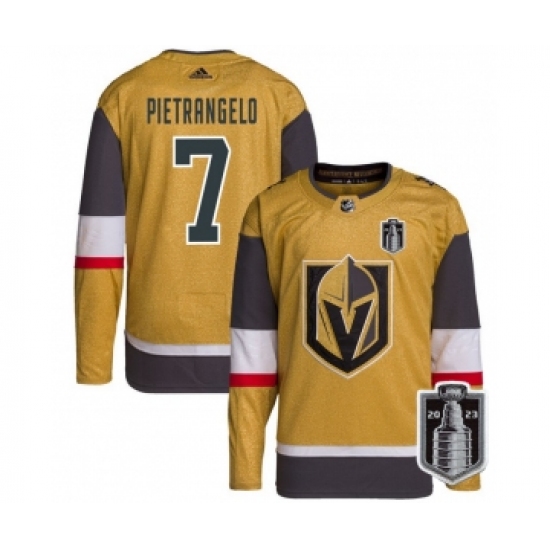 Men's Vegas Golden Knights #7 Alex Pietrangelo Gold 2023 Stanley Cup Final Stitched Jersey