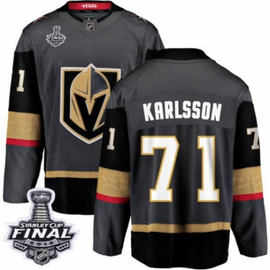 >Men's Vegas Golden Knights #71 William Karlsson Authentic Black Home Fanatics Branded Breakaway 2018 Stanley Cup Final NHL Jersey