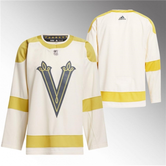 >Men's Vegas Golden Knights Blank Cream 2024 Winter Classic Primegreen Stitched Jersey