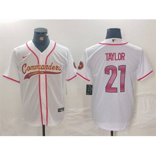 >Men's Washington Commanders #21 Sean Taylor White With Cool Base Stitched Baseball Jersey