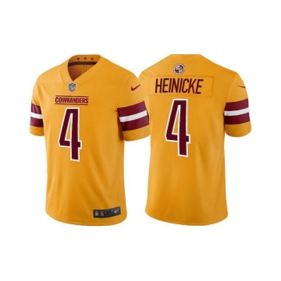 >Men's Washington Commanders #4 Taylor Heinicke Gold Vapor Untouchable Stitched Football Jersey